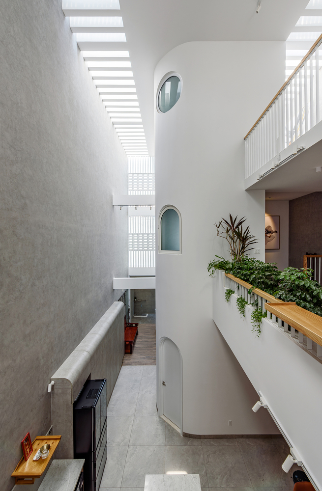 在豪华公寓楼的高层公寓里居住了多年后,这位业主如今已上了年纪,拥有许多回忆,比起实用的服务设施,他更需要与家人和邻居建立更多的联系。因此,业主回到了他曾经居住过的老街区,购置了土地并建造了一所房子,这样他就可以和独自生活的哥哥姐姐们住在一起。房屋的设计满足了室内物品的便利性,这些物品仅为满足业主的身体需求而设。由于业主年事已高,精神需求也非常高,我在设计时专注于空间和光线的体验,以便业主能够清晰地感受现实,并且能更深入地探寻自己的内心世界。