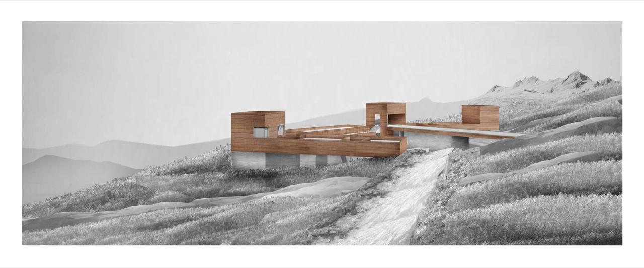 该度假别墅设计通过直观的过程,在物体与景观、人与自然之间建立了联系。在这个美轮美奂、规模宏大的地方,零散的体量可以毫不费力地融入这片土地,保护其自然条件。通过对地形的微妙改造,建筑体下沉并沉降,给人一种从大地中浮现的感觉。或者,它升起并旋转,寻找远处的景色。提案将始终选择在现有景观和预测景观之间进行对话和平衡。