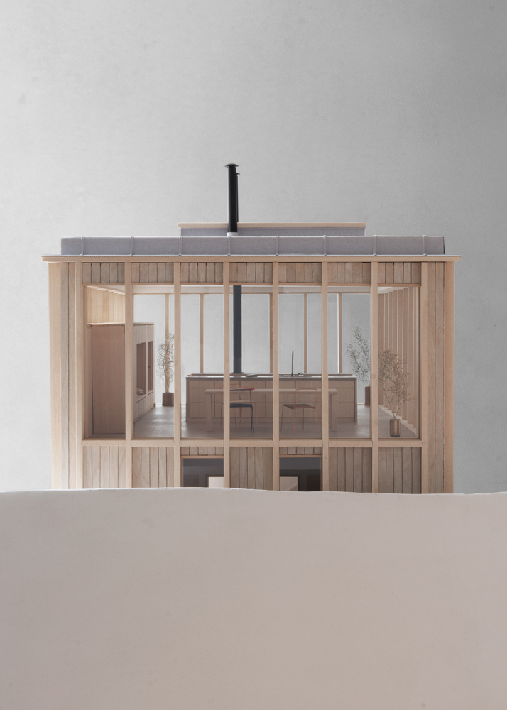 考虑到该地块的特殊性质,建筑尽可能使用可再生材料。在 Saltviga 项目中利用地板生产的边角料进行升级改造,而在这个项目中则尝试了提升原木材料品质的想法。通过挑选、切割、胶合的工艺,有节疤的松木被加工成无节疤的松木。有节疤的木材用于室内不可见的结构部分,而精心挑选的无瑕疵部分则外露展示。这样一来,松木从一种价格亲民且容易获得的材料,转变为具有更细腻、优美纹理质感的材料。