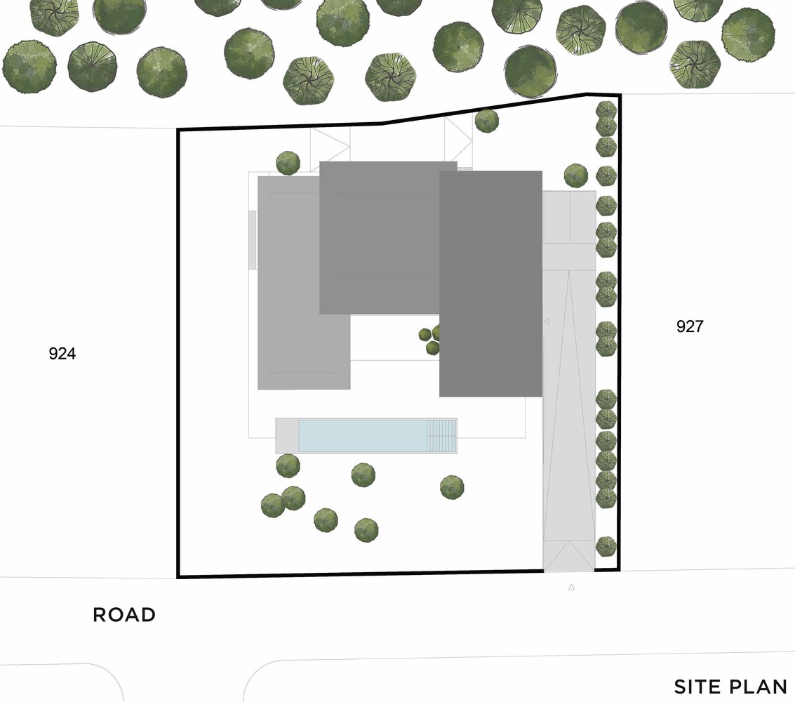 房子的平面呈 U 型,分为三个不同的层次,与倾斜的地形相呼应。房屋朝向北部的森林和南部遥远的乌鲁达山。中央起居区呈东西向延伸,南北两侧的外墙全部由玻璃制成,让自然光洒满整个空间。住户们称其为 “森林流经的房子”。位于南面露台和泳池之间的三棵山毛榉树被认为是土耳其神话中 “心脏 ”的象征,这也是南面庭院的隐喻意义所在,也是这座房子名字的由来。Kalpgah “一词的意思是生命的中心,与心脏和胸部有关,”Can House “的名字也反映了这一点。