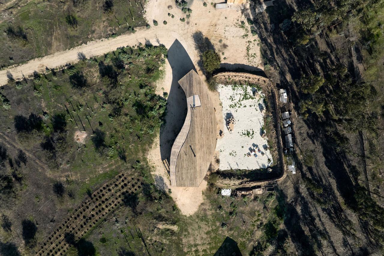 每一种这样的自然景象都化为了他们日常生活里的一种仪式。在这些与自然、花园和空间紧密相连的日常仪式中,他们能够以一种饱含爱意且充实的方式来享受生活。房屋的体量蜿蜒在一个岩石花园之上,这个花园由受到保护的前哥伦布时期的仪式用岩石所构建,周围环绕着半圆形的石墙和一层石英石,营造出了一个私密的生活空间,其中心处于房子主要的斐波那契曲线轴线上。第二条曲线以房屋前院花园的轴线为核心,为位于工作室和房屋之间的入口预留了空间。