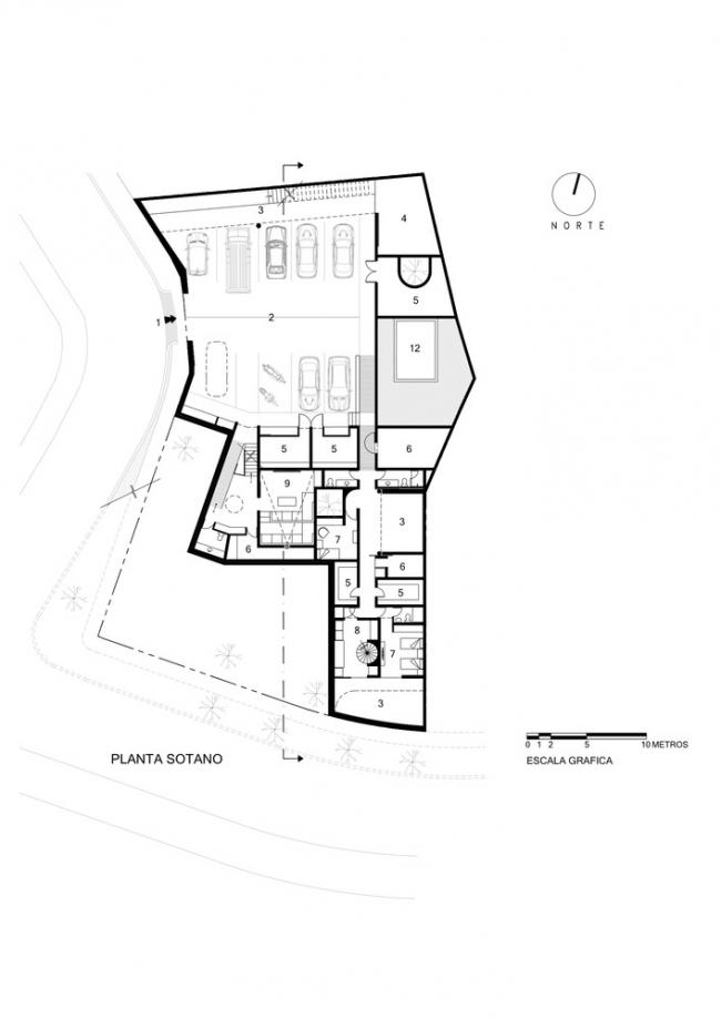 这座住宅位于瓜达拉哈拉市的一个传统住宅区内,在两个山丘之间,因此大部分场地中都有相当大的坡度。地块位于山丘之上,面积达1035平方米,形状不规则,由南向北朝格伦的方向延伸,这一侧也是非常重要景观的方向。建筑设置在场地的角落处,旁边就是两条街道,南侧的相邻地段几乎完全平坦,但是在西部有陡峭的斜坡。
