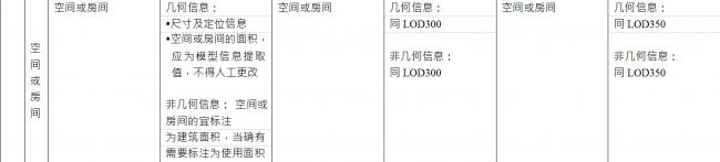 BIM施工模型细度表关于空间或房间的说明
