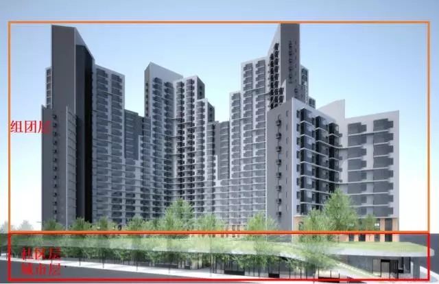 2、社区层主要由架空层(飘板层)组成,供居民休闲活动。