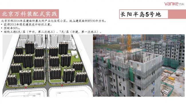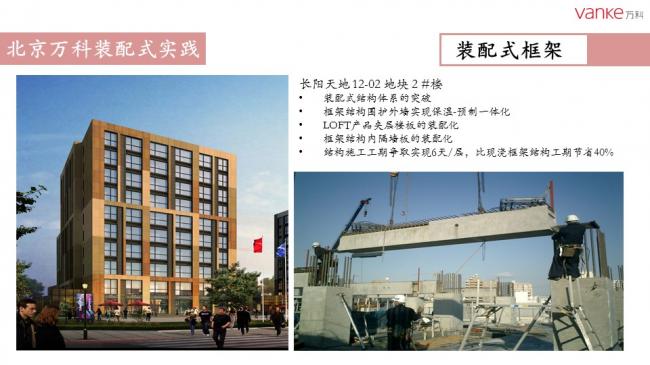 任光洁总工指出,自2007年北京万科开展装配式建筑试点工程以来,共实施装配式项目9个,建筑面积51.5万平米。作为北京市在建项目中首个全项目装配式建筑的商品房项目,万科长阳天地0909地块全部采用装配式剪力墙结构体系,预制率达50%,采用瓷砖反打“三明治”预制外墙板、预制内墙、叠合板、预制楼梯、预制飘窗、FRP空调围栏、预制围墙等预制构件。同时也运用了整体卫浴等装修部品产业化技术。2014年,万科与北京住总集团合作成立构件厂,设计年产构件5万方,每年能够满足50万平方米装配式建筑需求。万科在绿色建筑和装配式建筑方面将不断探索,更进一步。