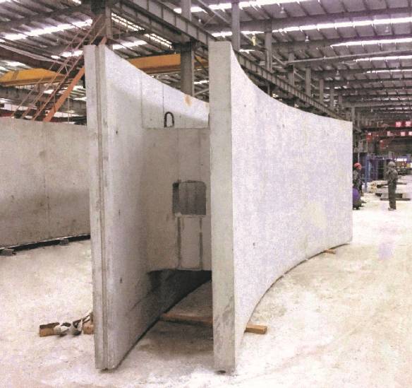 本工程使用方法先将井筒沿高度拆分成6层,底层为刃脚层,其余5层为标准层,每层拆分为10块,每块内、外侧墙通过连接肋相互固结。所有内、外侧墙均采用高精度大块定型钢模板在工厂预制,标准化、模块化程度高。