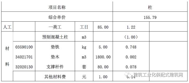 (2)材料费:成品构件生产过程中耗费的主要原材料、辅助材料、零配件以及成品构件吊装和支撑用的埋件等费用。