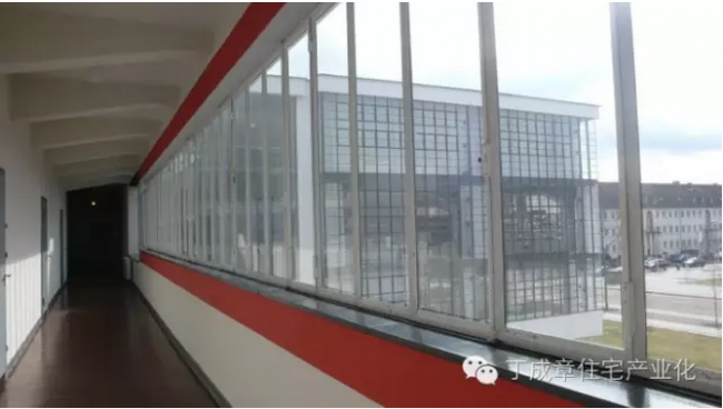 与此同时,格罗比乌斯还在学校附近的一条安静的街道为教员设计了四栋宿舍(图2-3),这四栋宿舍建筑同样具有高度功能主义和理性主义的特点,没有任何装饰,采用钢筋混凝土预制构件,两层住宅空间互相错落,具有很好的生活功能。建成之后,格罗比乌斯自己率先迁到那里住。他说“建筑是可以协助形成生活方式的。”