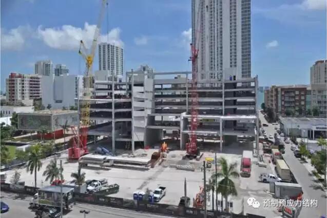 全预制立体停车埸是美国的特色,充分运用了预应力及干连接的特色。也是典型剪力墙-梁柱体系,也充分运用双T轻易的提供18米的跨度,基本上其他建筑材料不太容易提供更有竞争力的同型建筑。这才是发展装配式工业同常的途径。