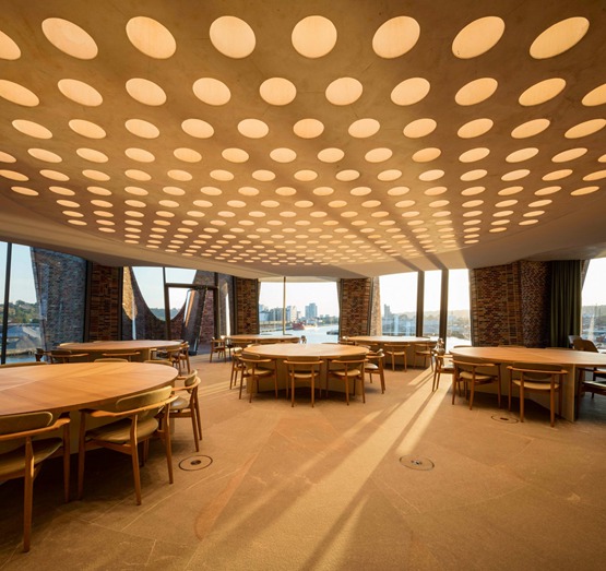 人行桥通向大楼的公共底层,它提供了在港口对面的景观,并装饰着由埃利亚松创作的特定的艺术品。