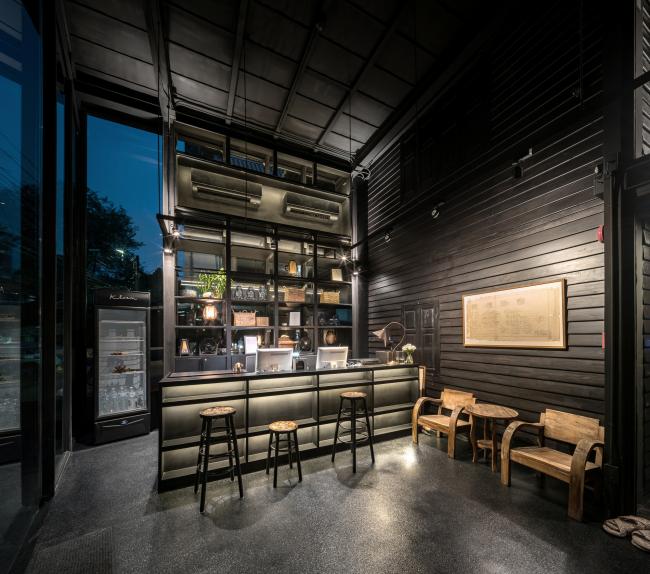 该项目的主要设计方法是 “修复”和“增添”,尽可能地基于现有的结构和材料来设计这个空间。首先,我们保留了原有的结构。然后,拆除所有的木墙进行修复,抛光以及重新上色。就算是一些像窗框一样的小细节,我们也保持了原样。当然我们还做了加法,添加玻璃表层,希望在保证空调系统正常使用的同时,引入自然光。空间也被重新规划,以适应旅馆的功能需求。