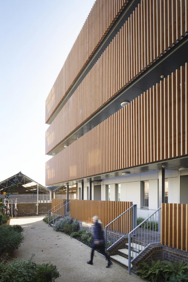 有角度的阳台,以及将入户交通从建筑中半抽离出来的设计,消灭了完全北向的户型,让 Paxton 集合住宅中的每一间公寓都能享受到充足的阳光。