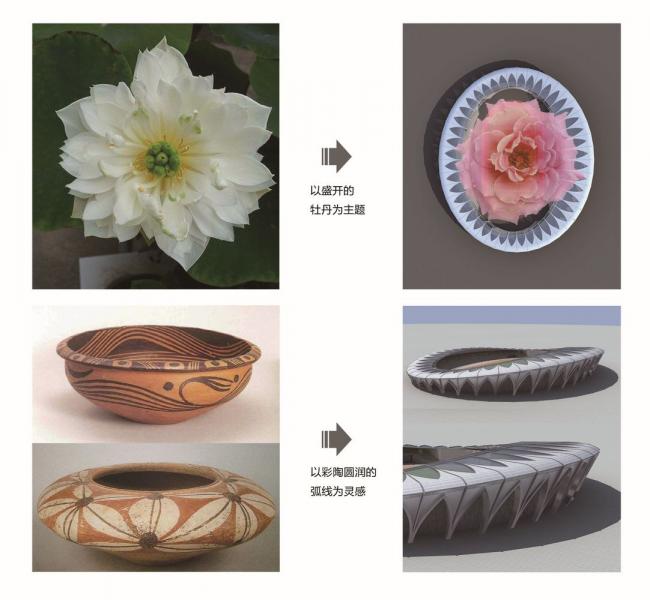 (BIM)建筑灵感来源于临夏市河州特色:牡丹、彩陶和彩绘。设计将牡丹花做为形象主题,采用牡丹花瓣式结构体系,其外瓣就是一个薄壳的空间,可以表达为一个合理的大跨度结构, 且形态十分优美。造形以彩陶圆润的弧线为灵感,力求与内部的功能布置紧密结合。设计合理融合大跨度结构形式和使用空间的统一体,以体现结构的力量美、逻辑美,实现大空间的经济性和舒适性。