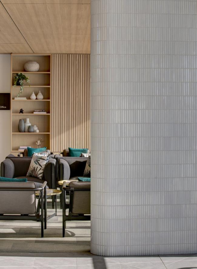 Aveo最初是作为传统建筑进行构思的,在Jackson Teece和Stonebuild的指导下,将胶合板材料融入到设计中,以展示行业领导力。与单纯由建筑效率驱动的设计相比,该项目更加注重建筑表现和功能规划,这一点与最近竣工的其他大型木结构建筑有所不同。迄今为止已经建成的大型木结构建筑通常是“四方体”式的形态,几乎没有曲线线条存在,基本上都是方方正正,上下平面严格对位,阳台也都是内包式阳台(即不采用悬臂结构,包含在立面轮廓内,三面以墙体围合),并且其通常采用的混合型施工方法(结合工程木材、钢材或者混凝土)到现在都没有建立好成熟的施工体系。