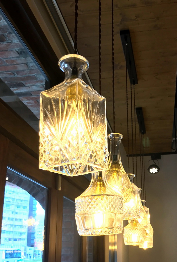 我们企图用『大正浪漫』风格来打造和洋兼容的空间氛围,因此用了许多的复古砖及花砖来做为场域的区隔,酒瓶造型的灯具、吧台的壁砖、厕所的的壁砖等等。