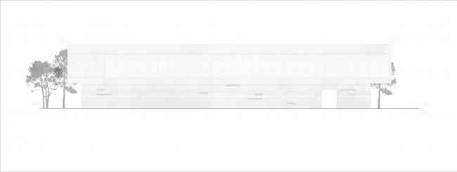 穿过城市绿地,抵达去纪念性的庭院入口,左侧为玻璃门厅,直入进长达21M结构跨度下的休憩区或移步登上右方的环桥。两条流线的起点也是终点,重点是架空层作为设计的重要理念,创造了小型建筑的公共性。