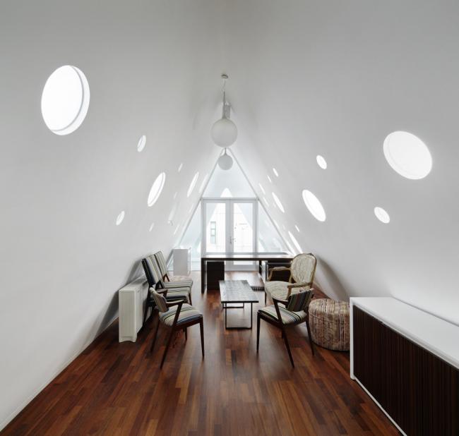 由于整个建筑体量超过了初始占地面积比,考虑到当地道路施加的倾斜30米线限制条件以及日照法规必须考量的建筑后退,我们不得不通过四舍五入,在法律规定内创造一个具有最大面积比的混凝土外壳,切割并且连接这个体量形态的所有边缘界点。最终,我们形成了再添加一层建筑结构而完成最初的挑战。通过这种方法,强调继承而不是(BIM建筑)完成,我们能够创建一个相对宽敞的建筑物,与邻近的其他建筑物相比,我们最大限度地提高了建筑面积比和容积率。