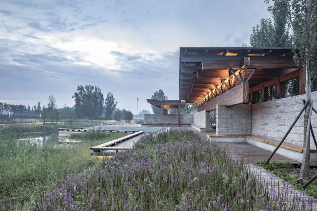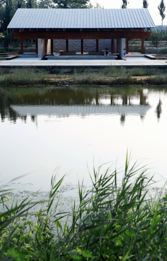 梁亭是便是我们在古洋河公园里设计的两组临水亭榭。亭在这里是我们介入自然的一种方式,它提供了新的观看角度和体验方式,正是在这一过程中我们创造了风景。