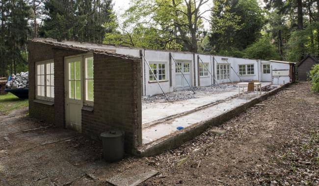 在Epse附近的森林中,彼特·海恩·伊克(Piet Hein Eek)于2005年设计了一座度假屋。在同一座森林中相距几百米远的位置,一个家庭也购入了一块土地并找到我们来进行设计。在这样优美的森林中,有两座由车库相连的老旧度假屋。瘦长的建筑南侧为开敞的空间,建筑本身破烂不堪,不再能满足现代的生活需求。