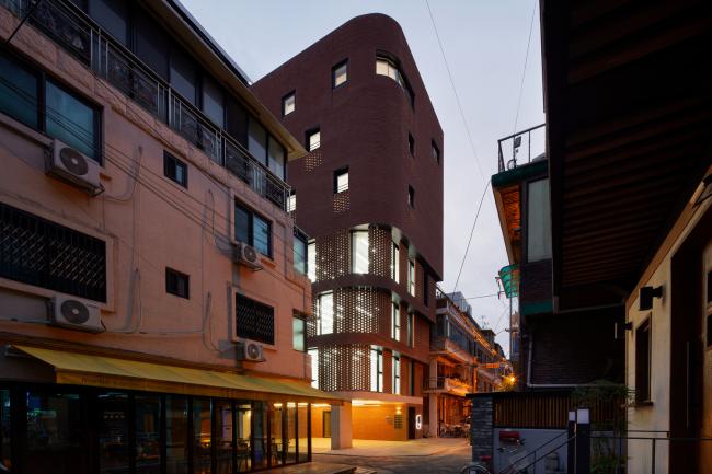 这座建筑与圣水洞的城市现状一样,是一个工作和生活共存的地方。3/1楼为综合楼,底层为商业设施,上层为办公居住一体式公寓。有了这样的复合式建筑,不同的使用者可以在白天和夜间的不同时间段里高效共享狭小场地内的有限空间。