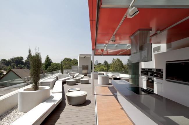 一直以来大家都知道屋顶被认为是第五外立面,我们在其上创造了一个带酒吧的大平层,这是一个位于景观高处且饱有活力的聚会场所。从那里可以看到安第斯(BIM建筑)山脉的无垠景象,山丘和附近绿地环绕的美景。