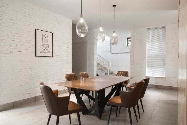 设计团队根据业主一家的生活习惯,在首层将餐厅作为入户后的空间中心,与西侧配备了储藏间的大厨房一起,成为业主展示厨艺的完美“舞台”。